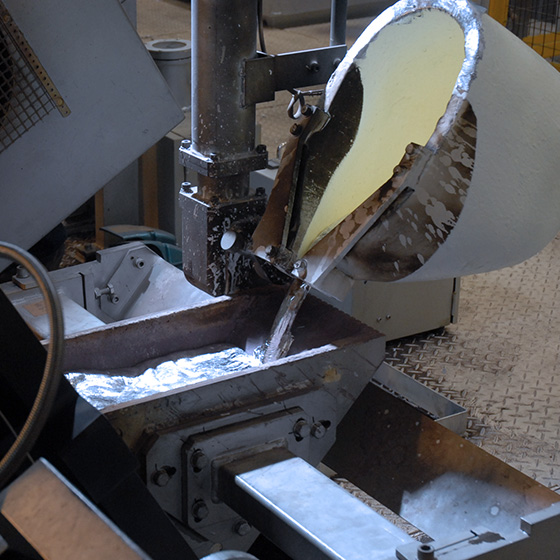 高効率、省エネの自動注湯設備により、安全に、正確に、効率よく鋳型への注湯が行われます。最新の鋳造機を使用し、寸法精度にすぐれた鋳物を提供します。